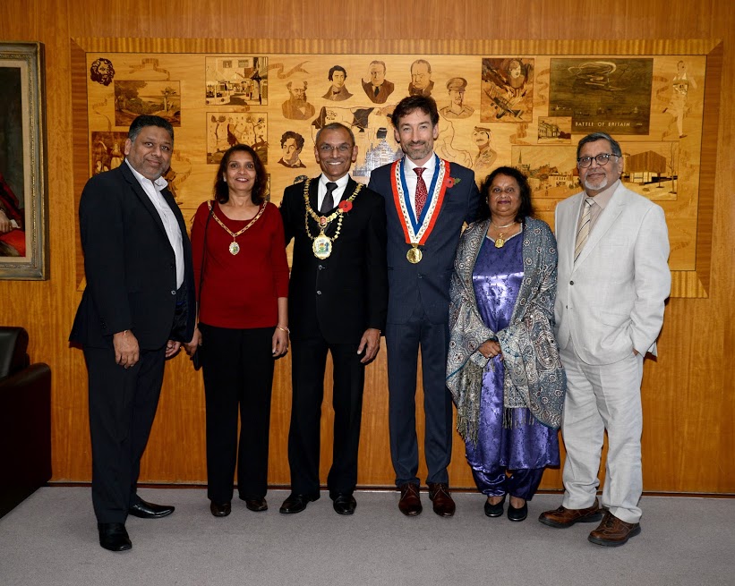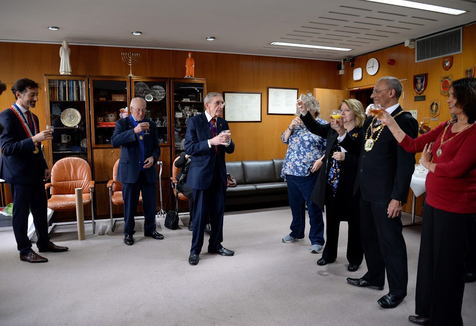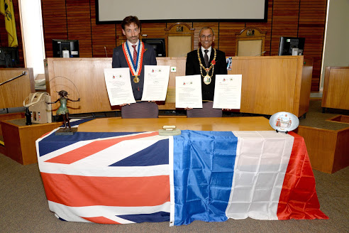 The 40th anniversary of Harrow-Douai twinning and exchanges was commemorated on November 7th when Harrow and Douai majors signed a joint declaration reaffirming links between the two in a ceremony at Harrow Civic Centre. It was the same venue and indeed the same room, the council chambers, in which the original declaration was signed 40 years ago. The two majors, Cllr Nitin Parekh for Harrow and Douai/s M Frederic Chéreau, and their families were joined by Douai councilors Khadija Ahantat and Carolle Divrechy, archivist Ophélie Girard, and former Labour leader of the opposition in Harrow Council Keith Toms who was present at the original event. In a speech Keith Toms commented upon how much Douai had in common with his own Welsh roots including coalmining and a strong left wing tradition. The Douai mayor and his entourage were each given presents about the life of local artist and maverick Heath Robinson. After the official ceremony those present went to a local restaurant, Bombay Central, for a commemorative meal. Here are some photos taken at the ceremony. ![]() The two majors signing the documents ![]() Majors with signed twinnng proclamations ![]() The majors family with the Douai major ![]() Douai's major with his family ![]() The former labour leader of the opposition Keith Toms speaking about the initial arrangements 40 years ago | ||||||||